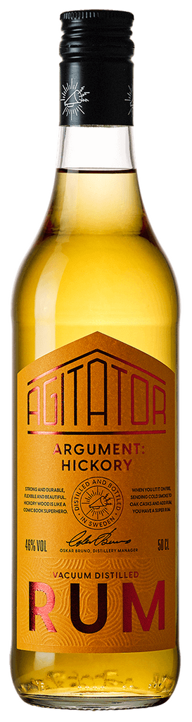 Rommen som Agitator lagrat på de kallrökta ekfaten har destillerats på melass som importerats från Paraguay. Att lagra på Hickoryfat skulle knappast vara görbart efter som det skulle utveckla alltför intensiva träsmaker. Kallrökningen blev den väg man valde för att se om det var möjligt att dra nytta av Hickoryns unika karaktär i romlagringen. Resultatet blev mycket lyckat.