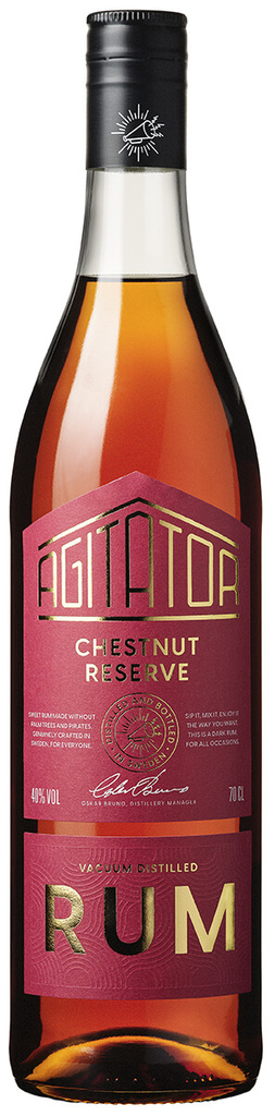 Agitator Chestnut Reserve Rum är en rom för den som vill uppleva något unikt. Till att börja med är svensk rom mycket ovanligt. Ingen annan svensk producent tillverkar sockerrörs-rom i stor skala. Att den dessutom är lagrad på kastanjefat gör den helt sensationell och till en solitär i världen. Chestnut Reserve är en rom som har en stor smakrikedom. Den präglas av ett fruktigt destillat och en kryddig fatlagring. Den är mycket god att dricka som den är, kanske med en isbit, men den är också ett lämpligt val för många klassiska romdrinkar när man vill ha en intensiv och framträdande romsmak. Prova till exempel att använda den till en Mojito, Daiquiri, Piña Colada eller en enkel Rom & Cola.