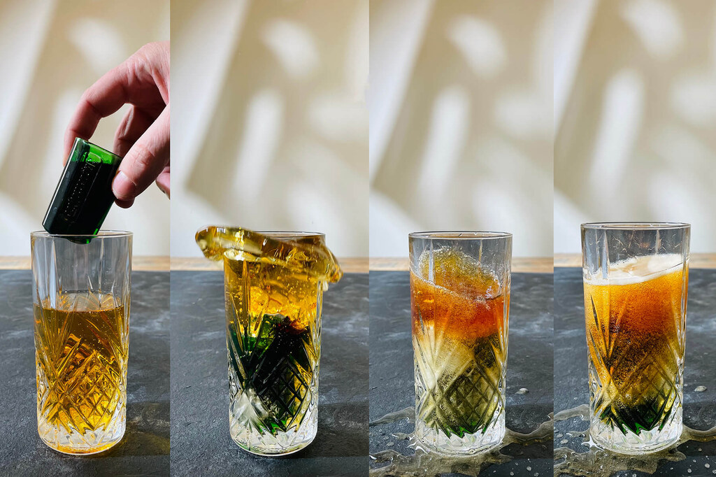 2. Droppa sedan shotglaset med Jägermeister ner i energidrycken, skål!