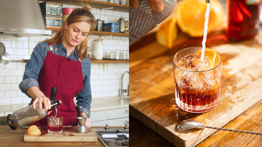- Häll på Campari och vermouth.