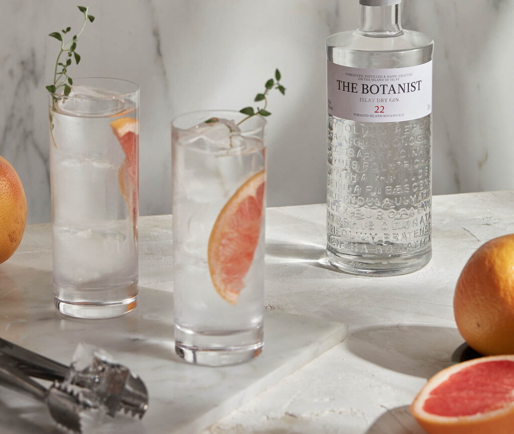 En Gin & Tonic är alltid en Gin & Tonic men kan varieras i oändlighet. The Botanist är en gin som produceras på ön Islay på västkusten i Skottland. Alla de 22 kryddor och örter som ginen destilleras tillsammans med plockas på ön. Därför är det ju strålande rolig idé att variera sin GT med säsongens olika örter och smaker. Våren illustreras här med en skiva grapefrukt och en spröd kvist av timjan. Hoppas det smakar.