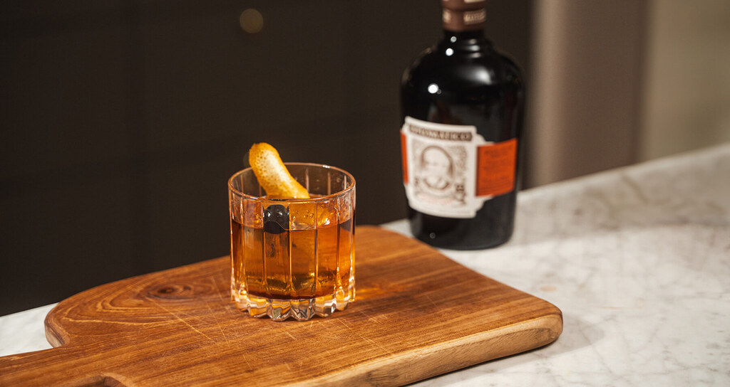 Old Fashioned är en klassisk cocktail som anses vara en av de äldsta och mest grundläggande drinkarna. Dess historia sträcker sig tillbaka till början av 1800-talet. Här blandar vi en variant med mörk rom från Diplomatico som bas.