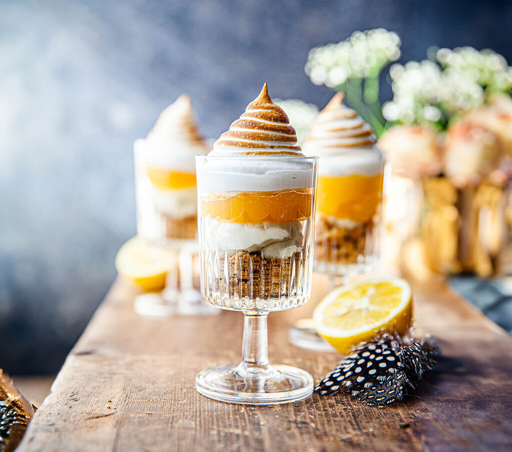 - Spritsa först ur mascarpone i glasen, sedan lemon curd och sist maräng. Bränn gärna av marängen med en gasbrännare.