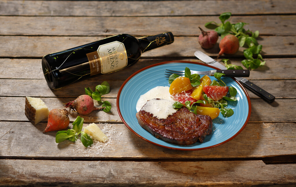 Vill du att dina gäster ska jubla av lycka inombords när du bjuder på middag? Då är det denna maträtt du ska välja och den är inte hellre så svår att tillaga. Som alltid välj fina råvaror och unna dig all tid i världen när du sätter igång med tillagningen. Med tanke på att såsen består manchegoost så är vinvalet ganska lätt. Vi väljer ett exklusivare rioja vin för att till fullo njuta av måltiden. Smaklig spis!