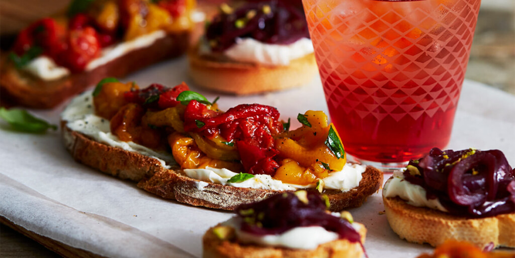 - Lägg på paprikaskivorna på brödet och toppa med lite basilika.