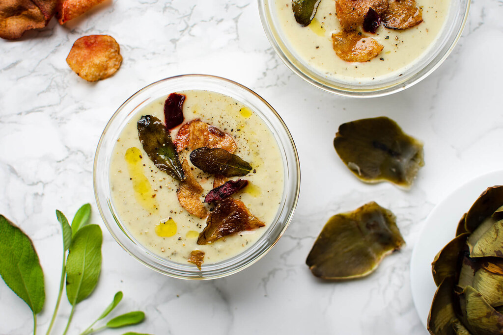 - Ta soppan från spisen och mixa den slät med en stavmixer.