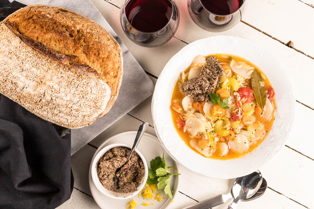 Supersnabb vegetarisk soppa med asiatiska smaker. Varm och mättande soppa att laga när iskalla vindar viner utanför och hungriga vargar som ylar. Snabbmisopulver finns till exempel från Renée Voltaire eller i asiatiska specialbutiker. Nori är alger och kan finnas som flingor, det finns även som stora ark (används till sushi) som du själv kan riva i små bitar. Vinet får gärna ha en generös fruktighet och smakrikedom, helt enkelt ett gott vin utan krusiduller. Smaklig måltid!